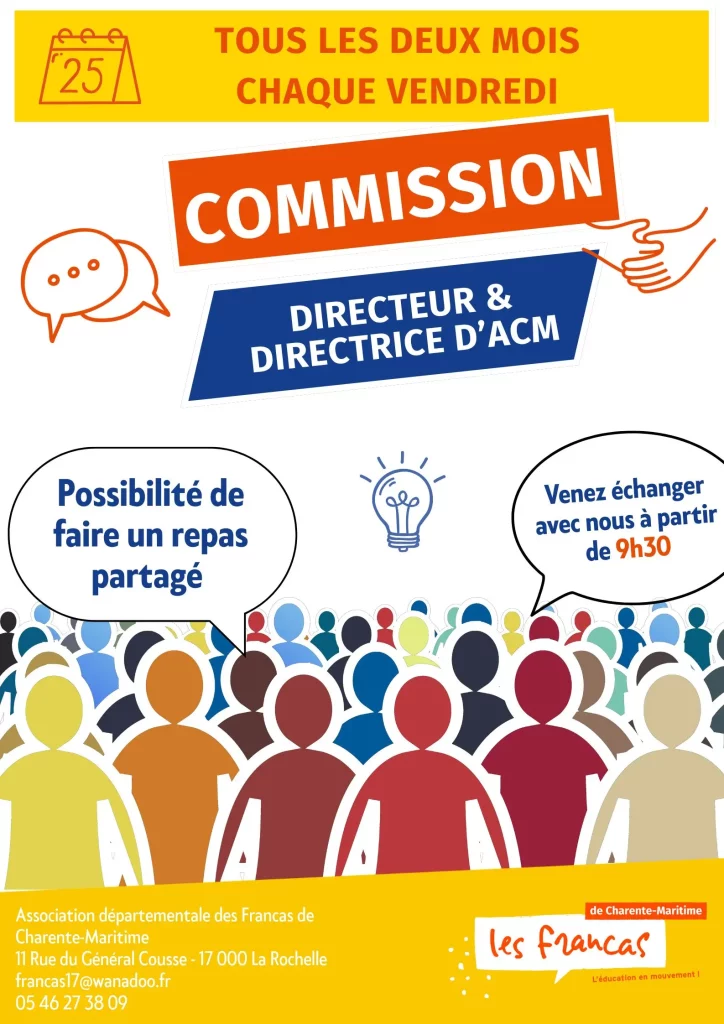 La commission s’adresse aux directeurs et directrices des accueils de loisirs des structures adhérentes.